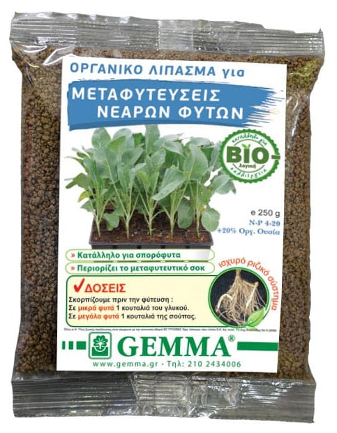 Οργανικό λίπασμα για Μεταφύτευση Νεαρών φυτών Gemma 250 gr
